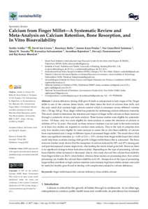 Calcium deficiency during child growth leads to osteoporosis in later stages of life. Finger millet is one of the calcium dense foods, with three times the level of calcium than milk, and the only cereal that contains high calcium content which is consistent across different varieties (364 � 58 mg/100 g). Thus, finger millet has potential for addressing calcium deficiency naturally. This study aimed to determine the retention and impact of finger millet calcium on bone turnover through a systematic review and meta-analysis. Three human studies were eligible for systematic review. Of these, only two were eligible for meta-analysis to assess the retention of calcium in children of 9 to 12 years. One study on bone turnover markers was not used in the meta-analysis as at least two studies are required to conduct meta-analysis. Due to the lack of complete data only four studies were eligible for meta-analysis to assess the in vitro bioavailability of calcium from unprocessed and a range of different types of processed finger millet. The result shows that there was significant retention (p < 0.05) of 23.4 � 2.9% calcium from finger-millet-based diet which could help bone accretion during child growth if finger-millet-based diet is consumed. The bone turnover marker study shows that the resorption of calcium reduced by 28% and 47% among peri and post-menopausal women respectively after feeding the nutria mixed grain ball. However, there is no significant change in bone formation marker. Depending on the type of processing, calcium bioavailability either increased or decreased. One in vitro study showed that calcium bioavailability from finger millet was 28.6% when boiled, whereas three studies on processing show that certain processing can double the calcium bioavailability to 61.4%. Irrespective of the type of processing, finger millets contribute to high calcium retention and extremely high bioavailable calcium and could be useful for healthy growth and in dealing with complications related to calcium deficiency.