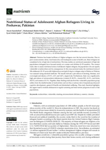 Nutritional status of adolescent Afghan refugees living in Peshawar, Pakistan.