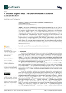 Makin, S. and Vaqueiro, P. ORCID: https://orcid.org/0000-0001-7545-6262 (2021) A discrete ligand-free T3 supertetrahedral cluster of gallium sulfide. Molecules, 26 (17). 5415. ISSN 1420-3049 doi: 10.3390/molecules26175415