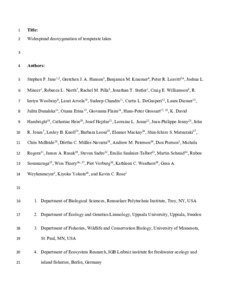 Widespread deoxygenation of temperate lakes.