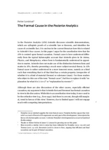 I argue that Aristotle’s account of scientific demonstrations in the Posterior Analytics is centred upon formal causation, understood as a demonstration in terms of essence (and as innocent of the distinction between form and matter). While Aristotle says that all four causes can be signified by the middle term in a demonstrative syllogism, and he discusses at some length efficient causation, much of Aristotle’s discussion is foremost concerned with the formal cause. Further, I show that Aristotle had very detailed procedures for identifying the formal cause, and that he is aware of several problems which might lead one to erroneously identify the wrong form as the cause of a property. Finally, I show that Aristotle’s account can easily be adapted to material causation, and through some modifications (introduction of process universals related through parthood), hinted at in II 11-12 and 16-17, to efficient and final causation.