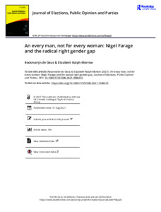 De Geus, R. ORCID: https://orcid.org/0000-0003-3053-2123 and Ralph-Morrow, E. (2021) An every man, not for every woman: Nigel Farage and the radical right gender gap. Journal of Elections, Public Opinion and Parties, 31 (4). pp. 470-487. ISSN 1745-7297 doi: 10.1080/17457289.2021.1968410