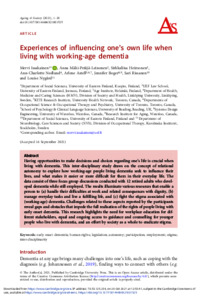Having opportunities to make decisions and choices regarding one’s life is crucial when living with dementia. This interdisciplinary study draws on the concept of relational autonomy to explore how working age people living with dementia seek to influence their lives, and what makes it easier or more difficult for them in their everyday life. The data consist of three focus group discussions conducted with 12 retired adults who developed dementia while still employed. The results illuminate various resources that enable a person to 1) handle their difficulties at work and their consequences with dignity, 2) manage everyday tasks and live a fulfilling life, and 3) fight the stigma associated with (working age) dementia. Challenges related to these aspects reported by the participants reveal gaps and obstacles that impede the full realisation of the rights of people living with early onset dementia. This research highlights the need for workplace education for different stakeholders, equal and ongoing access to guidance and counselling for younger people who live with dementia, and an effort by society as a whole to eradicate stigma.