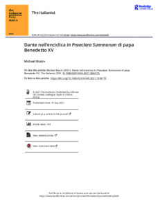 Biasin, M. (2021) Dante nell’enciclica In Praeclara Summorum di papa Benedetto XV. The Italianist. ISSN 1748-619X doi: 10.1080/02614340.2021.1964175