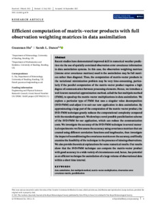 Recent studies have demonstrated improved skill in numerical weather prediction via the use of spatially correlated observation error covariance information in data assimilation systems. In this case, the observation weighting matrices (inverse error covariance matrices) used in the assimilation may be full matrices rather than diagonal. Thus, the computation of matrix-vector products in the variational minimization problem may be very time-consuming, particularly if the parallel computation of the matrix-vector product requires a high degree of communication between processing elements. Hence, we introduce a well-known numerical approximation method, called the fast multipole method (FMM), to speed up the matrix-vector multiplications in data assimilation. We explore a particular type of FMM that uses a singular value decomposition (SVD-FMM) and adjust it to suit our new application in data assimilation. By approximating a large part of the computation of the matrix-vector product, the SVD-FMM technique greatly reduces the computational complexity compared with the standard approach. We develop a novel possible parallelization scheme of the SVD-FMM for our application, which can reduce the communication costs. We investigate the accuracy of the SVD-FMM technique in several numerical experiments: we first assess the accuracy using covariance matrices that are created using different correlation functions and lengthscales; then investigate the impact of reconditioning the covariance matrices on the accuracy; and finally examine the feasibility of the technique in the presence of missing observations. We also provide theoretical explanations for some numerical results. Our results show that the SVD-FMM technique can compute the matrix-vector product with good accuracy in a wide variety of circumstances, and hence, it has potential as an efficient technique for assimilation of a large volume of observational data within a short time interval.