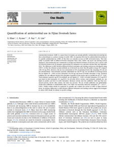 Antimicrobial resistance (AMR) is a major threat to humans and animals globally. Antimicrobial stewardship has been acknowledged as a primary strategy to tackle AMR. An important first step for antimicrobial stewardship is to quantify antimicrobial use (AMU). In Fiji, there are currently no data on AMU in livestock farms. This study aimed to quantify AMU in different livestock enterprises (beef, dairy, broiler, and layer) and farming systems (backyard, semi-commercial and commercial) in Central and Western divisions of Viti Levu, Fiji. A survey with 210 livestock farmers and 26 managers representing 276 enterprises was conducted between May and September 2019. The difference in AMU between different livestock enterprises and farming systems was investigated using ANOVA. In Fiji, the estimated annual antibiotic use in livestock was lower than the global average (44 compared with 118 mg/PCU). However, this use was concentrated in 56% of participant farms (the remaining 44% did not use antimicrobials). Total estimated quarterly anthelmintic use (20797mg) was not affected by farming systems but was highest (P<0.001) in dairy enterprises (24120 mg) and lowest in broiler enterprises (4 mg). Quarterly antibiotic use was different between the enterprises regardless of the metrics used to quantify the use (P<0.05). Total estimated quarterly mg/PCU of antibiotic use was highest (P<0.001) in broiler enterprises (12.4 mg/PCU) and lowest in beef enterprises (0.2 mg/PCU). For all other ESVAC metrics, total estimated antibiotic use was higher in poultry and lower in cattle enterprises. Backyard systems used less antibiotics (total mg) than commercial systems, but for other metrics, the trend was reverse. The use of both antibiotics and anthelmintics (rather than antibiotics or anthelmintics alone, or no AMU) was associated with dairy enterprises (Χ2=123, P<0.001). Further studies should be conducted to quantify and evaluate the drivers of AMU in Fijian livestock farms. In addition, differences in AMU between different enterprises and farming systems suggest that strategies to reduce AMU should be tailored to specific settings.
