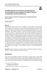 This qualitative survey study set out to investigate in-service and pre-service primary school teachers’ perceived barriers to and enablers for the integration of children’s literature in mathematics teaching and learning in an Australian educational context. While research over the past three decades have documented pedagogical benefits of teaching mathematics using children’s literature, research into teachers’ perceptions regarding the use of such resources is virtually non-existent. The study thus filled this research gap by drawing responses from open-ended survey questions of 94 in-service and 82 pre-service teachers in Australia. A thematic analysis revealed 13 perceived barriers classified under five themes with Lack of Pedagogical Knowledge and Confidence, and Time Constraint, representing 75% of all perceived barriers. Moreover, 14 perceived enablers were identified and classified under five themes with Pedagogical Benefits and Love of Stories representing around 70% of all perceived enablers. Findings also showed that most of the teachers in the study (around 75%) never or infrequently used children’s literature in their mathematics classrooms. The study highlights the role of professional learning and teacher training in ensuring that both in- and pre-service teachers have the necessary pedagogical knowledge, experience and confidence in using children’s literature to enrich their mathematics teaching.
