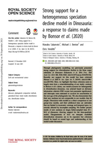 Strong support for a heterogeneous speciation decline model in Dinosauria: a response to claims made by Bonsor et al . (2020).