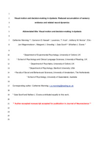 Visual motion and decision-making in dyslexia: reduced accumulation of sensory evidence and related neural dynamics.