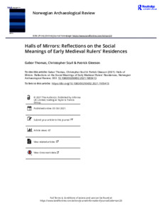 Thomas, G. ORCID: https://orcid.org/0000-0003-0311-8218, Scull, C. and Gleeson, P. (2021) Halls of mirrors: reflections on the social meanings of early medieval rulers’ residences. Norwegian Archaeological Review, 54 (1). pp. 75-79. ISSN 1502-7678 doi: 10.1080/00293652.2021.1955413