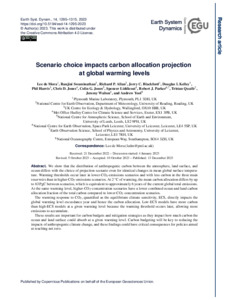 Scenario choice impacts carbon allocation projection at global warming levels.