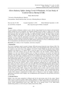The glove industry in Malaysia continues to grow with the strong demand from the domestic and international markets. During the Covid-19 pandemic, the worldwide demand for gloves surges to a higher level due to huge demand for the medical and healthcare usage. This creates opportunities for gloves manufacturers to increase their production lines and produce more gloves to fulfil the markets’ demand. The paper studies the glove industry in Malaysia and applies a case study of Comfort Gloves Berhad, which is a glove manufacturer in Malaysia to look in depth the opportunities and threats faced by glove manufacturers during the Covid-19 pandemic. The authors studied the published resources to collect information and further analysed the data and information collected. This paper discusses the SWOT analysis and Porter Five Forces in influencing the markets. The recommendations and conclusion are provided at the end of the paper.