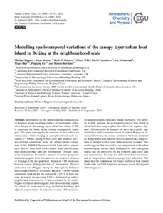Modelling spatiotemporal variations of the canopy layer urban heat island in Beijing at the neighbourhood scale.