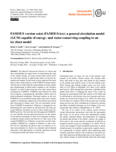 Smith, R. S. ORCID: https://orcid.org/0000-0001-7479-7778, George, S. ORCID: https://orcid.org/0000-0002-0396-0299 and Gregory, J. M. ORCID: https://orcid.org/0000-0003-1296-8644 (2021) FAMOUS version xotzt (FAMOUS-ice): a general circulation model (GCM) capable of energy- and water-conserving coupling to an ice sheet model. Geoscientific Model Development, 14 (9). pp. 5769-5787. ISSN 1991-9603 doi: 10.5194/gmd-14-5769-2021
