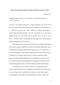 This chapter examines the creative practice of fiction film directors and seeks to identify patterns of difference that can be sorted into coherent schemes of practice. I then apply these findings in order to propose pedagogic innovations in film education. My research finds that the systems of creative practice initiated by film directors are highly varied, but those variations can be grouped together into different ‘Modes’, with each having distinct features. I outline here the ideas around three such Modes of Creative Practice. In doing so, my intention is to begin a process of evolving a Theory of Film Practice that relates to the making of screen fiction. The chapter discusses how this theory may impact on the educational approach of Film Schools across the world.
