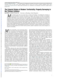 The colonial origins of modern territoriality: property surveying in the thirteen colonies.