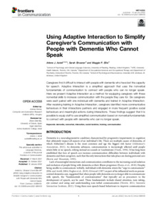 Using adaptive interaction to simplify caregiver’s communication with people with dementia who cannot speak.