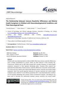 The relationship between sensory reactivity differences and mental health symptoms in children with neurodevelopmental conditions and their neurotypical peers.