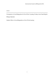 Consequences of late bilingualism for novel word learning: evidence from Tamil–English bilingual speakers.