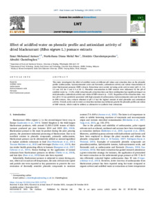 Effect of acidified water on phenolic profile and antioxidant activity of dried blackcurrant (Ribes nigrum L.) pomace extracts.