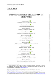 This forum provides an outlet for an assessment of research on the delegation of war to non-state armed groups in civil wars. Given the significant growth of studies concerned with this phenomenon over the last decade, this forum critically engages with the present state of the field. First, we canvass some of the most important theoretical developments to demonstrate the heterogeneity of the debate. Second, we expand on the theme of complexity and investigate its multiple facets as a window into pushing the debate forward. Third, we draw the contours of a future research agenda by highlighting some contemporary problems, puzzles, and challenges to empirical data collection. In essence, we seek to connect two main literatures that have been talking past each other: external support in civil wars and proxy warfare. The forum bridges this gap at a critical juncture in this new and emerging scholarship by offering space for scholarly dialogue across conceptual labels.