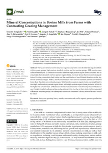 Mineral concentrations in bovine milk from farms with contrasting grazing management.