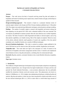 Mariani, M. M. ORCID: https://orcid.org/0000-0002-7916-2576 and Baggio, R. (2022) Big data and analytics in hospitality and tourism: a systematic literature review. International Journal of Contemporary Hospitality Management, 34 (1). pp. 231-278. ISSN 0959-6119 doi: 10.1108/IJCHM-03-2021-0301
