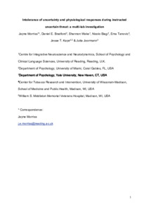 Intolerance of uncertainty and physiological responses during instructed uncertain threat: a multi-lab investigation.