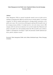 Talent management in the public sector: empirical evidence from the emerging economy of Dubai