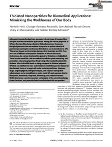 Thiolated nanoparticles for biomedical applications: mimicking the workhorses of our body.