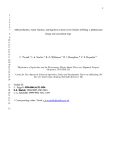Milk production, rumen function, and digestion in dairy cows fed diets differing in predominant forage and concentrate type.
