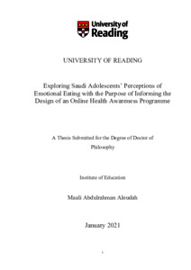 Aloudah, M. A. (2021) Exploring Saudi Adolescents’ Perceptions of Emotional Eating with the Purpose of Informing the Design of an Online Health Awareness Programme. PhD thesis, University of Reading. doi: 10.48683/1926.00101352