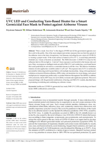 | Uncontrolled Keywords | healthcare, COVID-19, germicidal face mask, FAR-UV-C LED, conducting yarn-based heater, MMT, antibacterial, cytotoxicity |