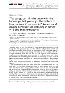 “You can go out 14 miles away with the knowledge that you’ve got the battery to help you back if you need it!” Narratives of ranging behaviour and wellbeing in diaries of e-bike trial participants