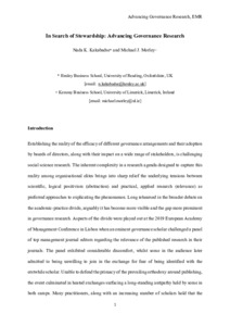 In search of stewardship: advancing governance research.