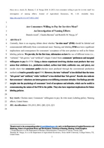 Are consumers willing to pay for in‐vitro meat? An investigation of naming effects