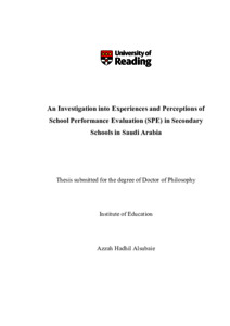Alsubaie, A. (2020) An Investigation into Experiences and Perceptions of School Performance Evaluation (SPE) in Secondary Schools in Saudi Arabia. PhD thesis, University of Reading. doi: 10.48683/1926.00101656