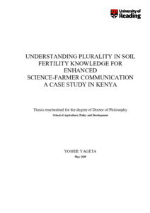 Yageta, Y. (2020) Understanding plurality in soil fertility knowledge for enhanced science-farmer communication a case study in Kenya. PhD thesis, University of Reading. doi: 10.48683/1926.00101658