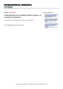 Harrison, S. P. ORCID: https://orcid.org/0000-0001-5687-1903, Prentice, I. C. ORCID: https://orcid.org/0000-0002-1296-6764, Bloomfield, K. J. ORCID: https://orcid.org/0000-0002-6492-4507, Dong, N. ORCID: https://orcid.org/0000-0003-0793-8854, Forkel, M. ORCID: https://orcid.org/0000-0003-0363-9697, Forrest, M. ORCID: https://orcid.org/0000-0003-1858-3489, Ningthoujam, R. K. ORCID: https://orcid.org/0000-0002-2194-0902, Pellegrini, A. ORCID: https://orcid.org/0000-0003-0418-4129, Shen, Y. ORCID: https://orcid.org/0000-0001-8106-3254, Baudena, M., Cardoso, A. W., Huss, J. C., Joshi, J., Oliveras, I., Pausas, J. G. and Simpson, K. J. (2021) Understanding and modelling wildfire regimes: an ecological perspective. Environmental Research Letters, 16 (12). 125008. ISSN 1748-9326 doi: 10.1088/1748-9326/ac39be