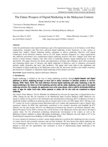 Mok Kim Man, M. and Yang, L. R. (2022) The future prospect of digital marketing in the Malaysian context. International Business Research, 15 (1). p. 72. ISSN 1913-9004 doi: 10.5539/ibr.v15n1p72