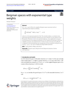 Arroussi, H. (2021) Bergman spaces with exponential type weights. Journal of Inequalities and Applications, 2021 (1). 193. ISSN 1029-242X doi: 10.1186/s13660-021-02726-4