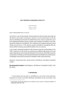 Use of force is one of the principles of international law that has been banned by the UN Charter and modern constitutions. However, since the enforcement of the UN Charter, self-defense has become the preferred excuse for states to justify their use of force. Applying self-defense, however, requires some conditions. Immediacy is one of the important conditions of self-defense. This is defined as the timeframe between armed attacks and reaction to it. This situation requires self-defense immediately after the armed conflict or during a reasonable timeframe since its occurance. In this respect, emerging Karabakh Conflict between Armenia and Azerbaijan in the 1990s is important. In this article, by comparing two different approaches (strict and board interpretation) of the temporal link between the measures of self-defense and the armed attacks (immediacy), the temporal link between the self-defense countermeasures of Azerbaijan and attacks by Armenia in Karabakh Conflict will be examined.