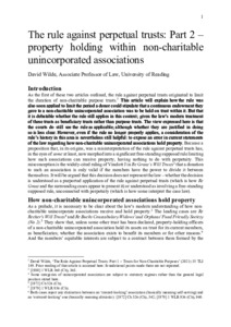 Wilde, D. (2022) The rule against perpetual trusts: part 2 – property holding within non-charitable unincorporated associations. Trust Law International, 35 (4). pp. 223-245. ISSN 0962-2624