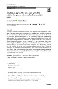 Scott, J. ORCID: https://orcid.org/0000-0003-2130-1091 and Tuma, M. (2022) A null-space approach for large-scale symmetric saddle point systems with a small and non zero (2,2) block. Numerical Algorithms, 90. pp. 1639-1667. ISSN 1572-9265 doi: 10.1007/s11075-021-01245-z