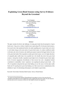 | Uncontrolled Keywords | Green bonds; Greenium; Bond Issuance; Survey; Climate finance |