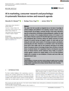 AI in marketing, consumer research and psychology: a systematic literature review and research agenda.