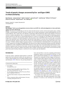 Trends of genetic changes uncovered by Env- and Eigen-GWAS in wheat and barley.
