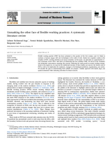 Soga, L. R. ORCID: https://orcid.org/0000-0002-5471-9673, Bolade-Ogunfodun, Y. ORCID: https://orcid.org/0000-0001-8143-6946, Mariani, M. ORCID: https://orcid.org/0000-0002-7916-2576, Nasr, R. and Laker, B. ORCID: https://orcid.org/0000-0003-0850-9744 (2022) Unmasking the other face of flexible working practices: a systematic literature review. Journal of Business Research, 142. pp. 648-662. ISSN 0148-2963 doi: 10.1016/j.jbusres.2022.01.024