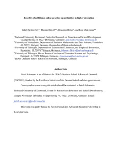 Schwerter, J., Dimpfl, T., Bleher, J. and Murayama, K. (2022) Benefits of additional online practice opportunities in higher education. Internet and Higher Education, 53. 100834. ISSN 1096-7516 doi: 10.1016/j.iheduc.2021.100834
