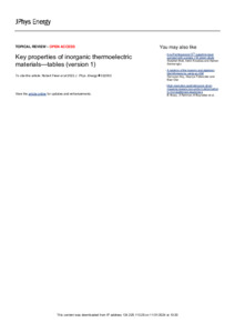 Key properties of inorganic thermoelectric materials – tables (version 1).